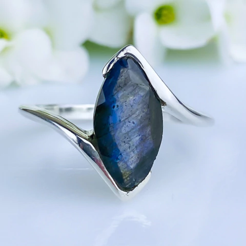 - > Anel de prata 925 com pedra natural labradorita (A2903)