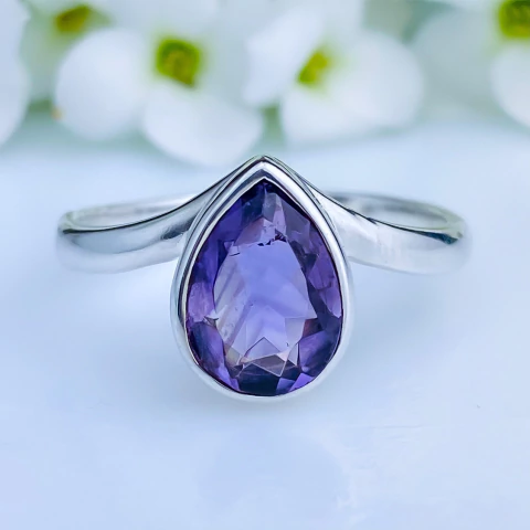 - > Anel de prata 925 com pedra natural ametista (A2914)