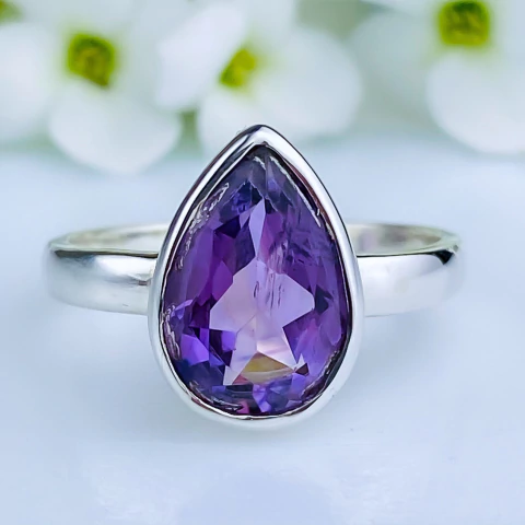 - > Anel de prata 925 com pedra natural ametista (A2919)